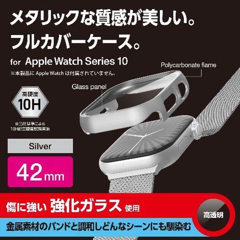 エレコム(ELECOM) AW-24BFCGPSV シルバー アップルウォッチ カバー Series 10 42mm フルカバー 表面硬度10H 全面保護 メタリック 2重構造