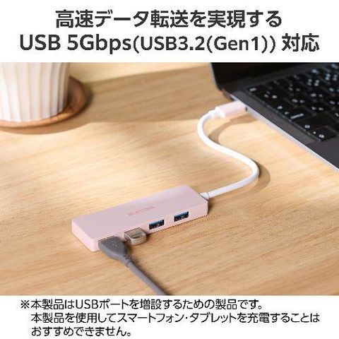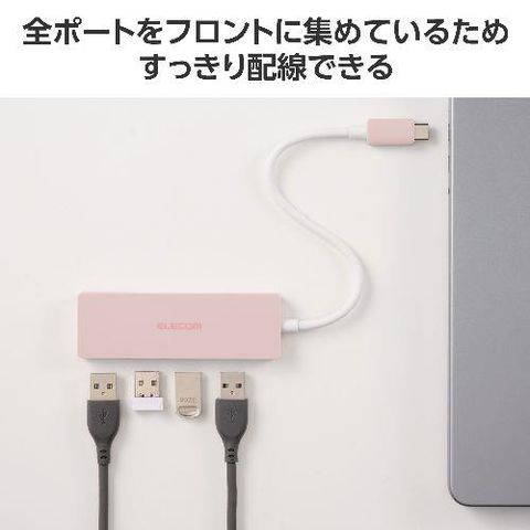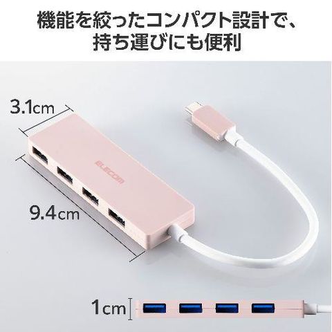 エレコム(ELECOM) U3HC-H040PN ピンク Type-C ハブ USB3.2 Gen1 USB-A ×4 バスパワー 薄型 ケーブル長15cm