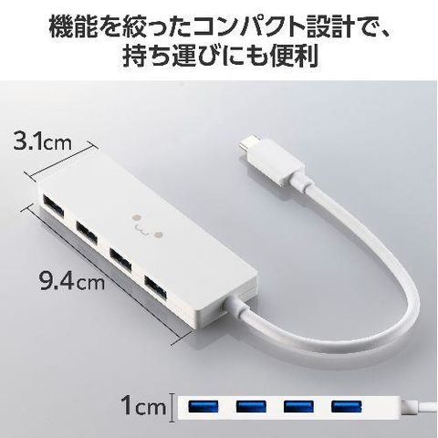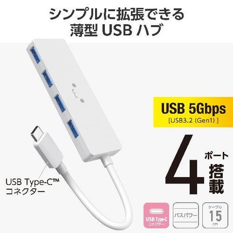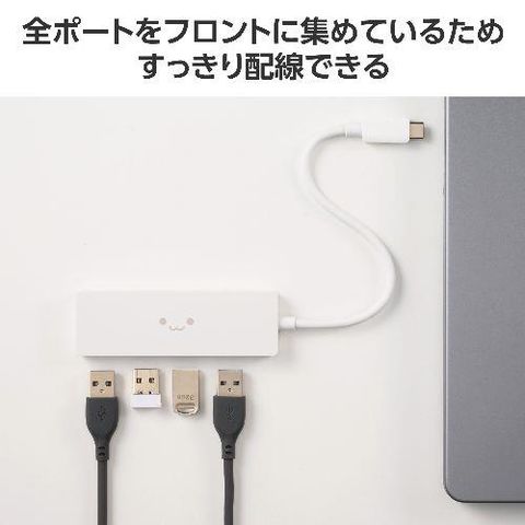 エレコム(ELECOM) U3HC-H040WF しろちゃん ホワイト×ブラック Type-C ハブ USB3.2 Gen1 USB-A ×4 バスパワー 薄型 ケーブル長15cm
