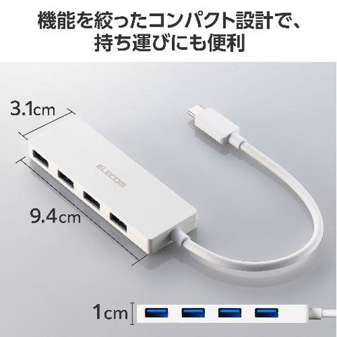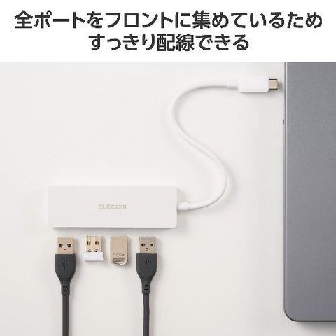 エレコム(ELECOM) U3HC-H040WH ホワイト Type-C ハブ USB3.2 Gen1 USB-A ×4 バスパワー 薄型 ケーブル長15cm