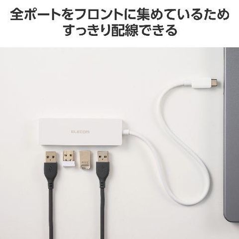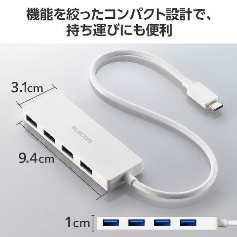 エレコム(ELECOM) U3HC-H041WH ホワイト Type-C ハブ USB3.2 Gen1 USB-A ×4 バスパワー 薄型 ケーブル長30cm