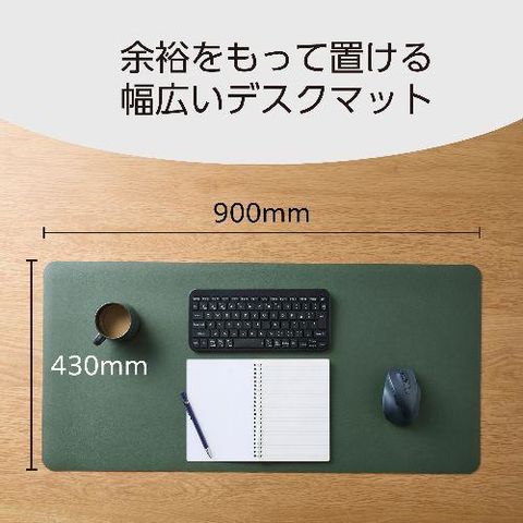 ■ノートパソコンやマウスはもちろん、キーボードやスマートフォン、手帳も余裕をもって置ける大きさのデスクマットです。