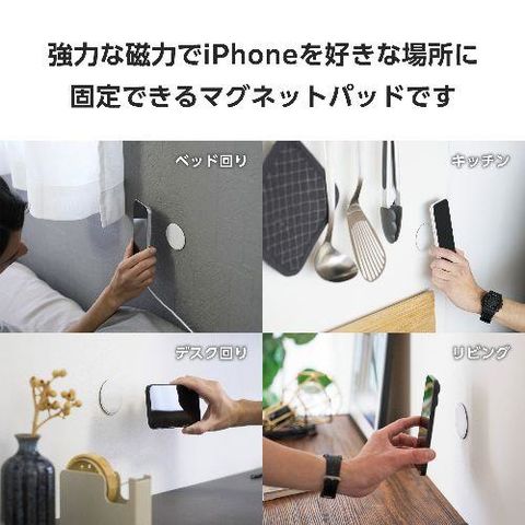 ■強力な磁力でiPhoneを好きな場所に固定できるマグネットパッドです。
