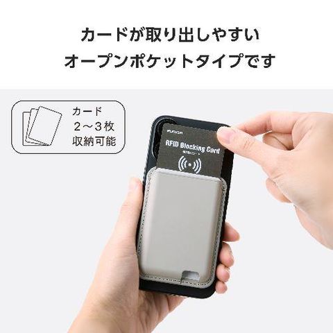 エレコム(ELECOM) AMS-MAGWSGY グレー カードケース スマホスタンド MagSafe iPhone用 2~3枚収納 磁気防止シート付属 マグネット 簡単脱着 軽量