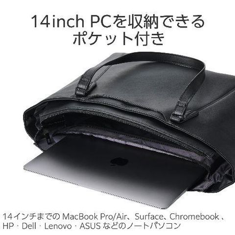 エレコム(ELECOM) BM-TBSLH01BK ブラック トートバッグ 肩掛け 自立式 大容量 15L 14インチノートPC A4サイズ収納 前面小物ポケット付 ORGULLO