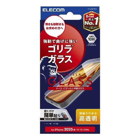 エレコム(ELECOM) PM-A25SFLGO iPhone 16e / 14 / 13 / 13 Pro ガラスフィルム 高透明 Gorilla R 薄型 表面硬度10H 指紋防止 飛散防止