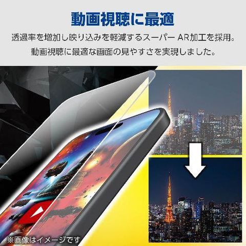■スーパーAR加工により透過率をアップ。動画視聴の際などに光の映り込みに邪魔されずに視聴することができる超透明タイプのガラスフィルムです。