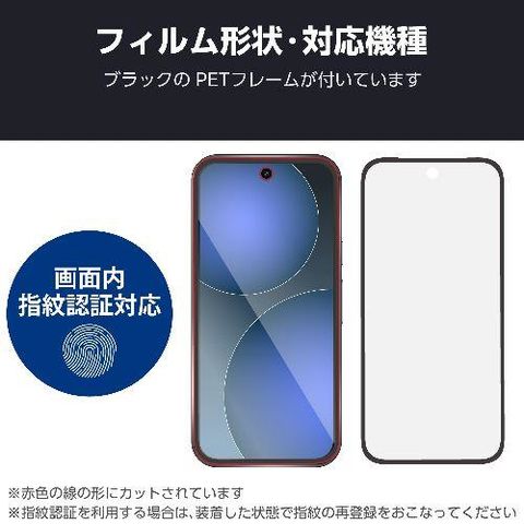 ■ガラスフィルムを衝撃から守るPET素材のフレームが付いており、四つ角が割れない安心設計です。
