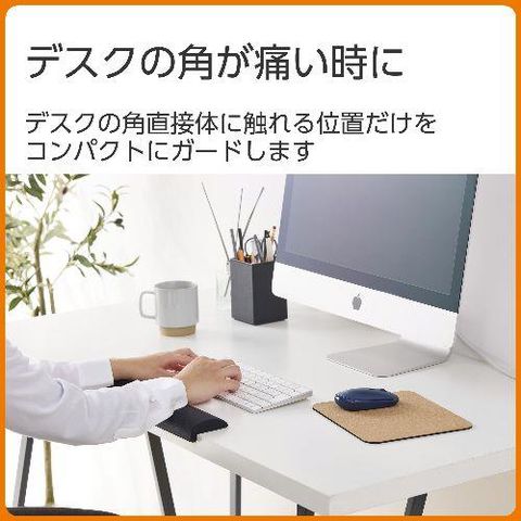 ■コーナーガードクッションがデスクの角をしっかり覆い、手首や腕が角に当たらない設計です。