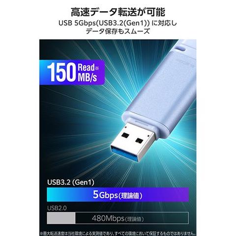 エレコム(ELECOM) MF-RCU3128GBU ブルー USBメモリ 128GB キャップ式 USB 3.2 Gen1 読み込み最大150MB/s 暗号化AES256 データ保護ソフト対応