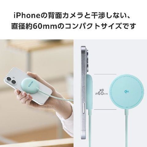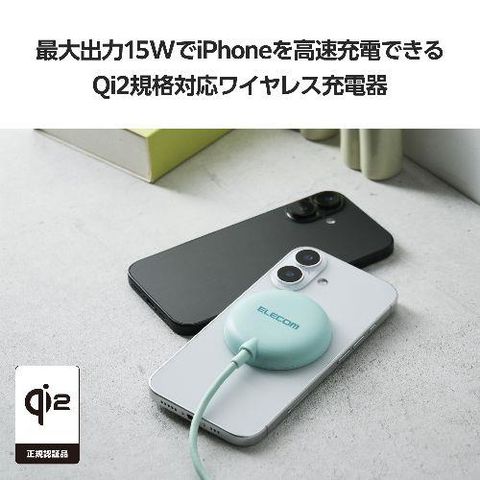 エレコム(ELECOM) W-MA10GN ティール ワイヤレス充電器 マグネット式 Qi2 15W 高速充電 コンパクト Magsafe対応iPhone/Qi2規格対応スマホ等