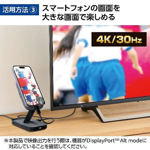 ■Qi2対応ワイヤレス充電スタンドを付属した、4in1ドッキングステーションです。スマートフォンのワイヤレス充電・周辺機器の接続を1台にまとめられます。