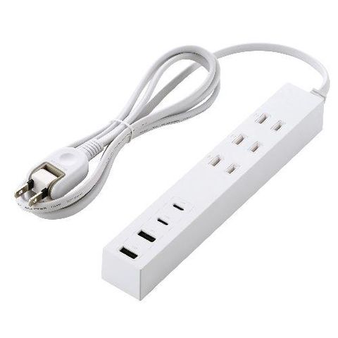 エレコム(ELECOM) T-U08-3A2C215WH ホワイト 延長コード 電源タップ 1.5m コンセント 3口 Type-C×2 USB-A×2 PD 20W 雷ガード 絶縁キャップ