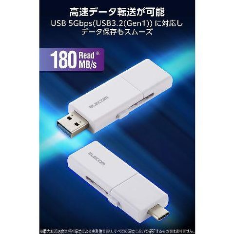 エレコム(ELECOM) MF-WSAU3064GWH ホワイト USBメモリ 64GB USB3.2 Gen1 Type-C/USB-A 両対応 スライド式 高速データ転送 セキュリティソフト使用可