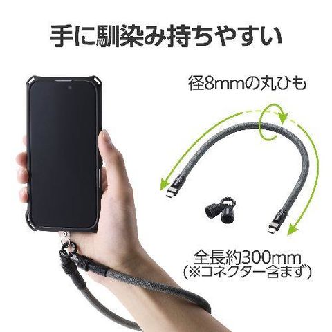 エレコム(ELECOM) P-STHH1CC08BK ブラック スマホストラップ ケーブル 2in1 ハンドストラップ USB Type-C to C 30cm PD 60W 急速充電