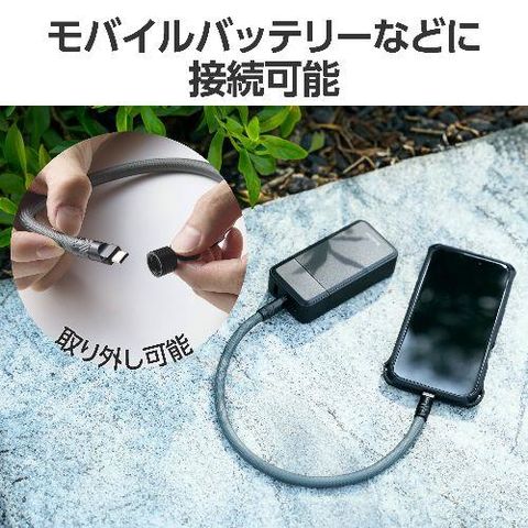 ■充電ケーブルとして使用する際は、モバイルバッテリーなどに接続することでどこでも充電が可能です。