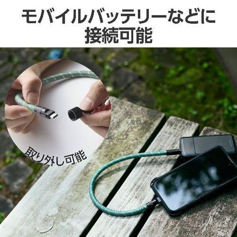 ■充電ケーブルとして使用する際は、モバイルバッテリーなどに接続することでどこでも充電が可能です。