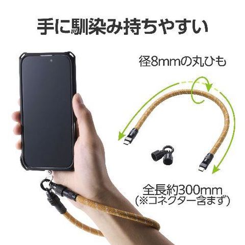 エレコム(ELECOM) P-STHH1CC08YL イエローベージュストライプ スマホストラップ ケーブル 2in1 ハンドストラップ USB Type-C to C 30cm PD 60W
