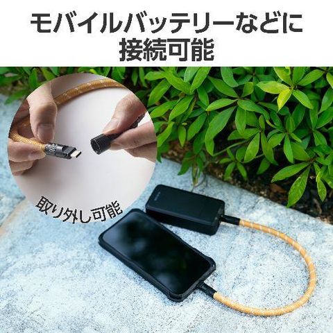 ■充電ケーブルとして使用する際は、モバイルバッテリーなどに接続することでどこでも充電が可能です。