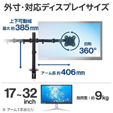 ■17インチから32インチのモニターに対応する、モニター用アームです。
