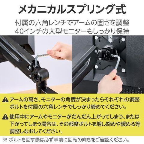 ■メカニカルスプリング式なので、少ない力でモニターの上下調節をスムーズに行うことができます。
