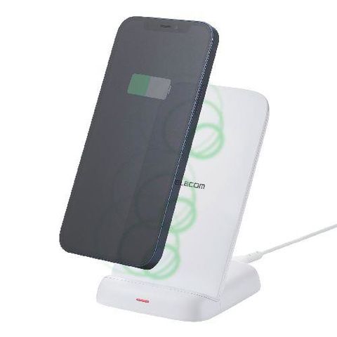 エレコム(ELECOM) W-QS11WH ホワイト ワイヤレス充電器 Qi認証 充電スタンド 12W / 10W / 7.5W / 5W 高速充電 横置き/縦置き