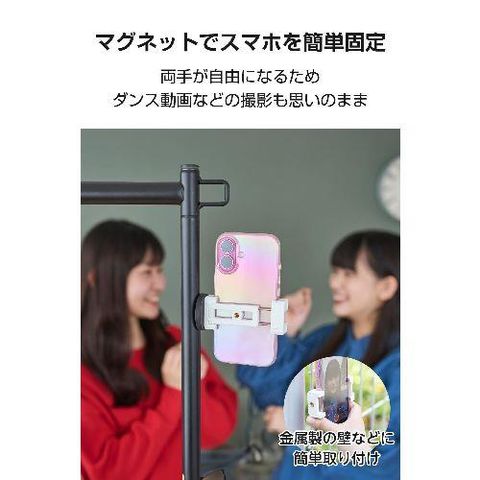 ■金属製の壁などにスマートフォンを簡単に固定可能。すぐに撮影できて、使用後の取り外しもスムーズです。