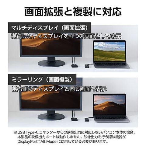 対応機器:USB Type-C(TM)ポートを搭載し、DisplayPort(TM)Alt Modeに対応したパソコン、スマートフォン、タブレット