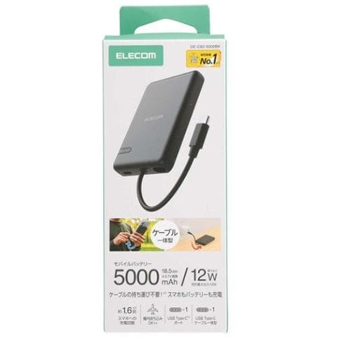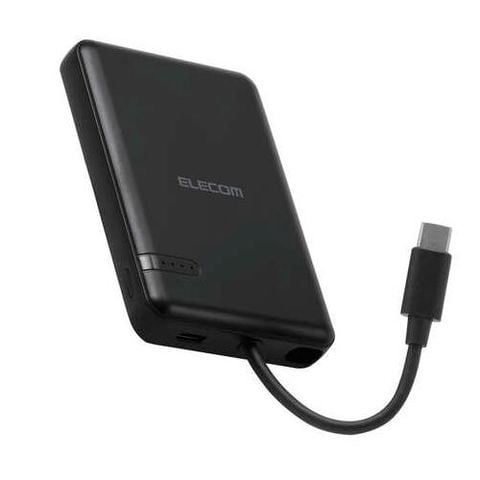 エレコム(ELECOM) DE-C62-5000-BK ブラック モバイルバッテリー 5000mAh 小型 USB-C ケーブル一体型 スマホ等充電可