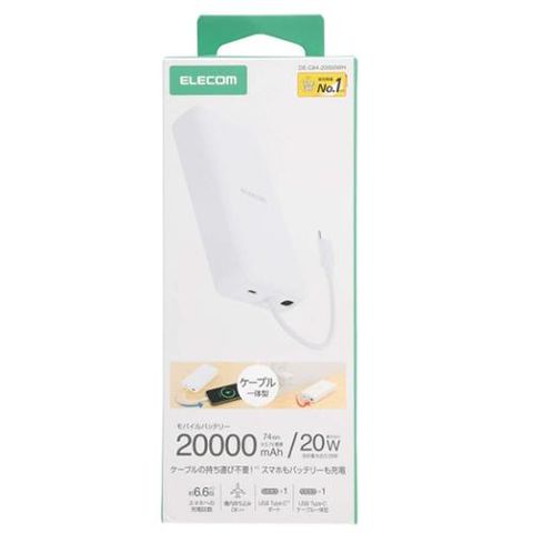 エレコム(ELECOM) DE-C64-20000-WH ホワイト モバイルバッテリー 大容量 20000mAh USB-C ケーブル一体型 スマホ等充電可のレビュー