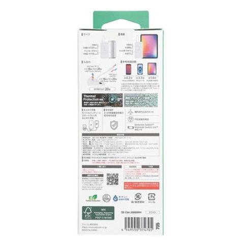 定格出力電流:USB Type-Cポート/プラグ(ケーブル部):3A/2.22A/1.67A(最大出力20W)