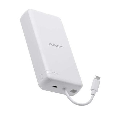 エレコム(ELECOM) DE-C64-20000-WH ホワイト モバイルバッテリー 大容量 20000mAh USB-C ケーブル一体型 スマホ等充電可