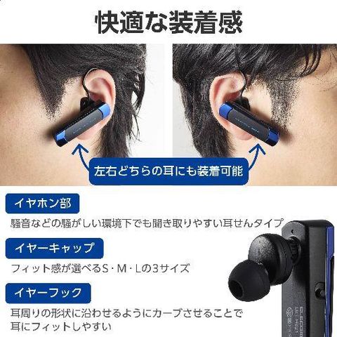 エレコム(ELECOM) LBT-HS21MPBU2 ブルー ヘッドセット Bluetooth5.2 片耳 ワイヤレス 最大8時間連続通話 ハンズフリー Qualcomm CVC 高音質