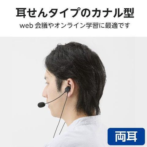 ■Web会議やビデオ通話、オンライン学習やオンラインゲームでのボイスチャットに最適な、マイクアーム搭載の両耳耳せんタイプのカナル型有線ヘッドセットです。