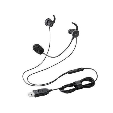 エレコム(ELECOM) HS-EP21SUBK ブラック ヘッドセット 有線 USB 接続 カナル型 マイク付き 高音質 音量調整 ミュート機能