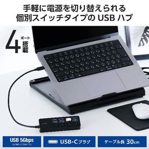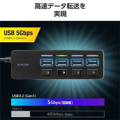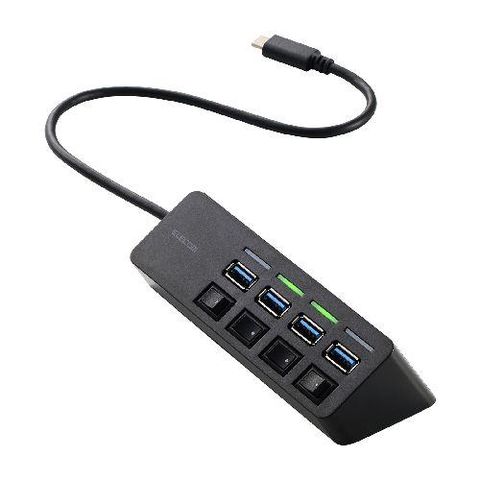 エレコム(ELECOM) U3HC-S040BK ブラック USB Type-C ハブ USB3.2 Gen1 USB-A ×4 バスパワー 個別スイッチ マグネット付 高速データ転送