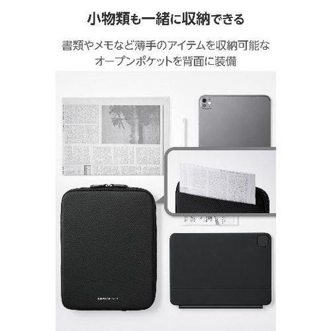 エレコム(ELECOM) TB-11ZSBIBLBK ブラック タブレットケース ~11インチ スリーブケース 衝撃吸収 撥水 オープンポケット付 タッチペン収納