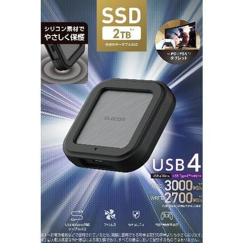 エレコム(ELECOM) ESD-EHC2000GBK ブラック 外付けSSD 2TB USB4 40Gbps対応 ポータブルSSD 最大読込3000MB/s 高速転送 Type-C ファンレス設計 耐衝撃