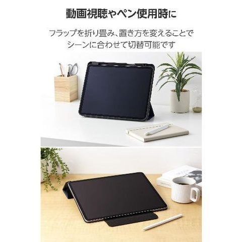 ■フラップカバーを三つ折りにすることで、動画視聴と、ドローイング・タイピングに最適な2通りの角度で使用できます。