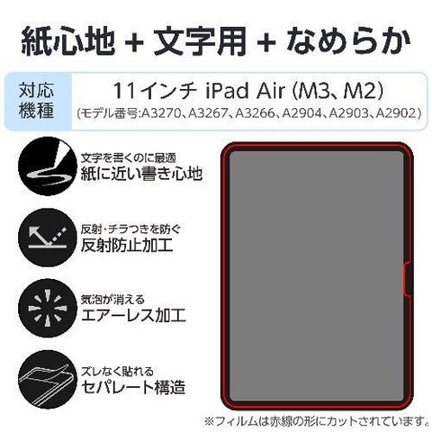 エレコム(ELECOM) TB-A25MFLAPNS 11インチ iPad Air M3/M2 フィルム 文字用 紙のような描き心地 アンチグレア なめらかタイプ 指紋防止