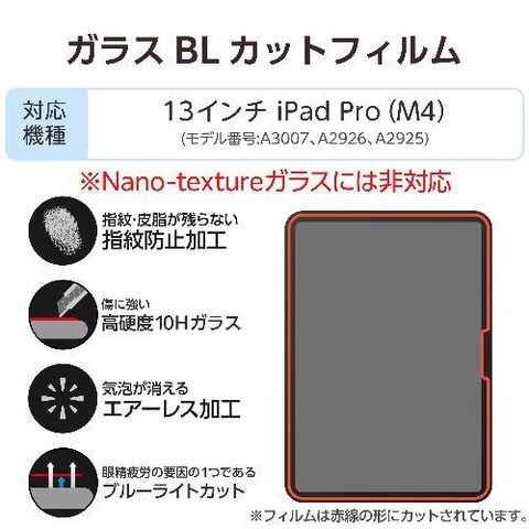 エレコム(ELECOM) TB-A25PLFLGGBLT 13インチ iPad Pro M4 2024年 ガラスフィルム ブルーライトカット 簡単貼り付けツール付 10H 指紋防止