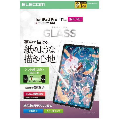エレコム(ELECOM) TB-A25PMFLGAPLL 11インチ iPad Pro M4 2024年 ガラスフィルム ケント紙タイプ アンチグレア 貼り付けツール付 指紋防止