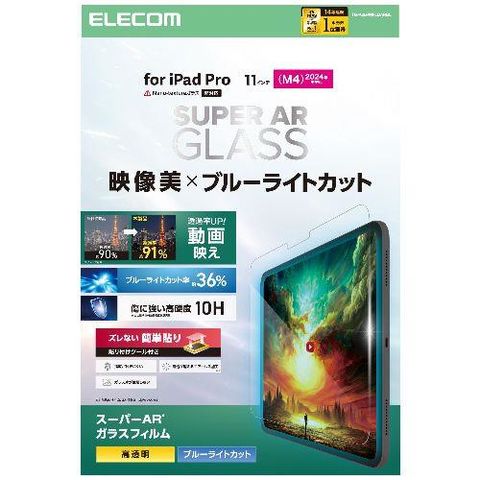 エレコム(ELECOM) TB-A25PMFLGARBL 11インチ iPad Pro M4 2024年 ガラスフィルム 高透明 光反射軽減 ブルーライトカット 貼り付けツール付