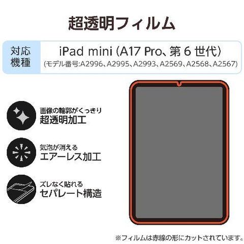 エレコム(ELECOM) TB-A25SFLAG iPad mini A17 Pro /第6世代 8.3インチ フィルム 超透明 気泡防止