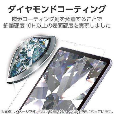 ■高硬度ガラスを更に強化。鉛筆硬度10H超のダイヤモンドコートにより傷に強い、ガイドフレーム付き画面保護ガラスフィルムです。 ※メーカー画面保護ガラスフィルム製品内の比較