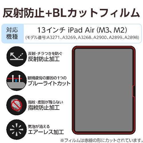 エレコム(ELECOM) TB-A25XFLBLN 13インチ iPad Air M3/M2 フィルム アンチグレア ブルーライトカット 固定シール付 抗菌 指紋防止