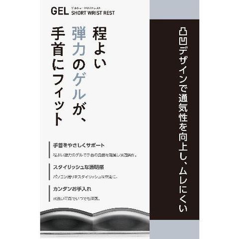 ■程よい弾力のゲルが優しく手首をサポートする、リストレストショートです。
