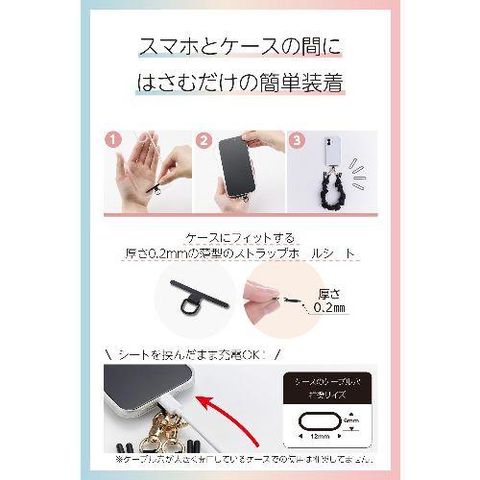 サイズ:ハンドストラップ:全長約200mm~約500mm、ストラップホールシート:W約45mm×D約0.2mm×H約23mm