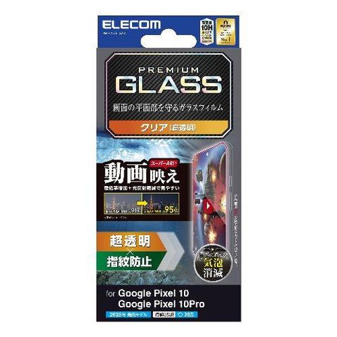 エレコム(ELECOM) PM-P252FLGAR Google Pixel 10/10 Pro ガラスフィルム 画面内指紋認証対応 超透明 光反射軽減 動画映え 表面硬度10H