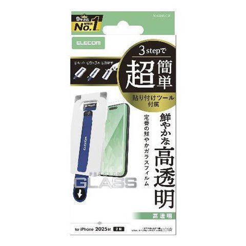 エレコム(ELECOM) PM-A25AFLGGT iPhone17 ガラスフィルム 高透明 10H 指紋防止 気泡防止 飛散防止 簡単貼り付けツール付